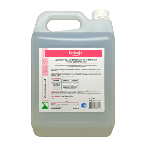 Готовий миючий засіб для хірургічної та гігієнічної антисептики рук медичного персоналу і шкіри пацієнта. Засіб володіє вираженою протимікробною активністю відносно грампозитивних та грамнегативних мікроорганізмів. "Санісофт" м’яко очищує та дезинфікує шкіру, захищає від знежирення та зневоднення. Рекомендований для частого використання.