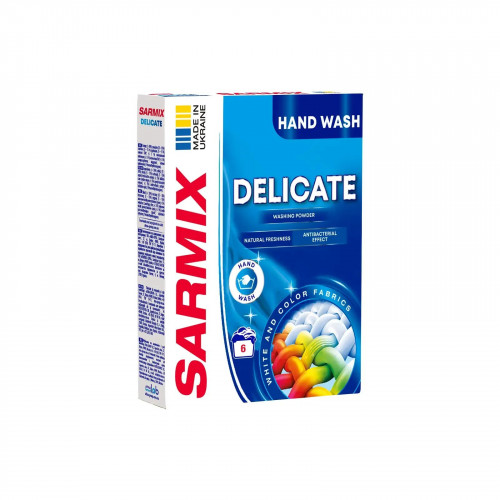 Пральний порошок Sarmix Delicate розроблений спеціально для ручного прання. Призначений для прання виробів із бавовняних, лляних, синтетичних тканин, а також тканин зі змішаних волокон.