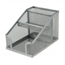 Порядок на столі - порядок у справах. Підставка-органайзер Axent - ще один офісний аксесуар, щоб підтримувати порядок на робочому столі - дозволяє естетично і зручно розмістити паперові блоки і канцелярське приладдя. Складається з 3-х відділень. Підставка-органайзер з металевої сітки органічно і "невагомо" виглядає на будь-якому робочому столі. Міцний матеріал, якісне фарбування і обробка країв, суцільнометалеве дно забезпечують акуратний зовнішній вигляд протягом довгого часу. Підставка-органайзер з металевої сітки може стати доповненням до інших настільних аксесуарів Axent з цієї серії. Розмір 100x143x100 мм.