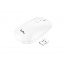 Wireless Миша Hoco GM15 - це технологічний аксесуар, який привертає увагу вишуканим дизайном, виділяється невеликою товщиною та вагою, що дозволяє носити його, наприклад, у сумці разом з ноутбуком. Пристрій має приємну на дотик поверхню, виконано в ергономічній симетричній формі, тому може комфортно використовуватися і правою, і лівою рукою. Під знімною верхньою панеллю його міцного корпусу знаходиться роз'єм для батарейки типу АА і слот з USB адаптером, призначеним для встановлення бездротового зв'язку з комп'ютером на частоті 2.4Гц. До того ж, мишка підтримує двоканальне підключення через Bluetooth V3.0 та V5.0, що визначає її сумісність із настільними комп'ютерами, ноутбуками, більшістю моделей планшетів та смартфонів. Аксесуар оснащений кнопкою для вибору чутливості сенсора (800, 1200 або 1600DPI), двома стандартними кнопками та коліщатком, ресурс натискань та прокручування яких становить 3 мільйони та 300000 разів відповідно, що гарантує його тривалий термін служби