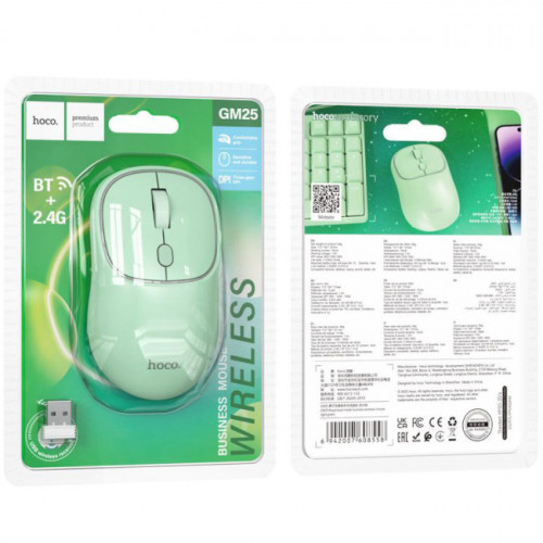 Миша підтримує подвійний режим підключення: через 2.4G та Bluetooth (3.0+5.2), надаючи можливість легкого перемикання між різними пристроями. Це робить GM25 ідеальним рішенням для багатозадачної роботи та сумісна з широким спектром пристроїв.