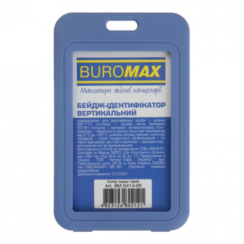 Вертикальний бейдж - ідентифікатор від BUROMAX – незамінний помічник в ідентифікації особистості на різних заходах (семінарах, конференціях, виставках тощо) з великою кількістю учасників! Окрім цього, ідентифікатори BUROMAX зараз активно використовуються у школах та ВНЗ для допомоги викладачам та персоналу закладу у ідентифікації учнів. В офісах, бізнес-центрах та компаніях використовують бейджі для ідентифікації співробітників, носіння пропусків чи магнітних ключів. Він чудово підійде для зберігання транспортної картки, проїзного або учнівського квитка тощо.