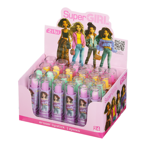 Гумка "Помада" серії SUPER GIRL від ZiВi – призначена для видалення написів графітових олівців, є не тільки інструментом для стирання, але також оригінальним стильним аксесуаром. Підходить для використання у навчанні, роботі та творчості, стане чудовою прикрасою робочої зони завдяки своєму цікавому дизайну. Невеликий розмір гумки дозволить покласти її в пенал чи органайзер.