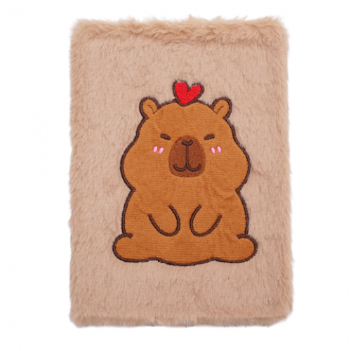 Блокнот має м'якеньку обкладинку зі штучного хутра, з дизайном у вигляді мультяшної фігурки капібари.