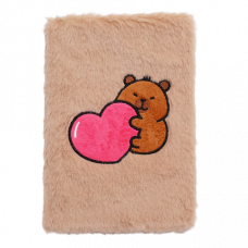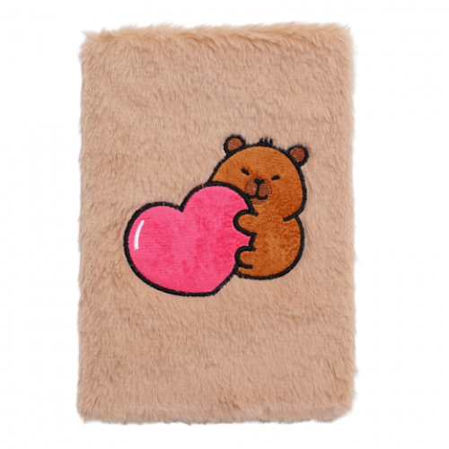 Блокнот має м'якеньку обкладинку зі штучного хутра, з дизайном у вигляді мультяшної фігурки капібари.