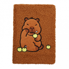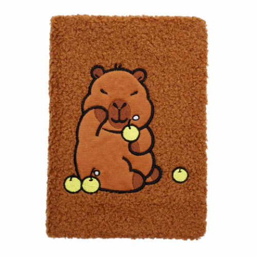 Блокнот має м'якеньку обкладинку зі штучного хутра, з дизайном у вигляді мультяшної фігурки капібари.