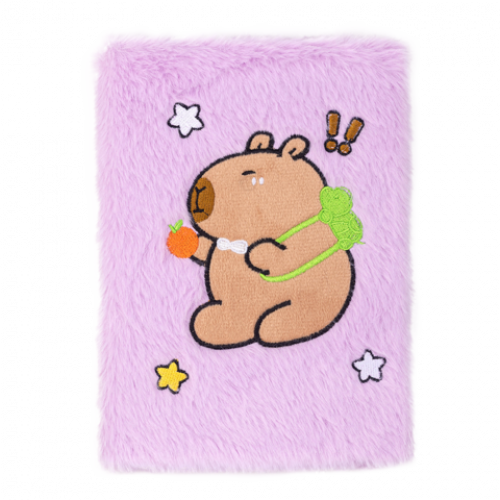Блокнот має м'якеньку обкладинку зі штучного хутра, з дизайном у вигляді мультяшної фігурки капібари.