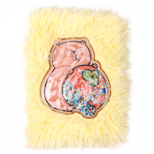 Блокнот має м'якеньку обкладинку зі штучного хутра, з дизайном у вигляді мультяшної фігурки капібари.