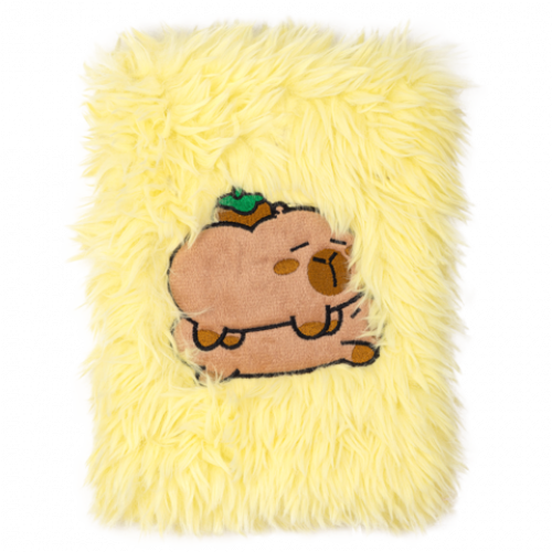 Блокнот має м'якеньку обкладинку зі штучного хутра, з дизайном у вигляді мультяшної фігурки капібари.