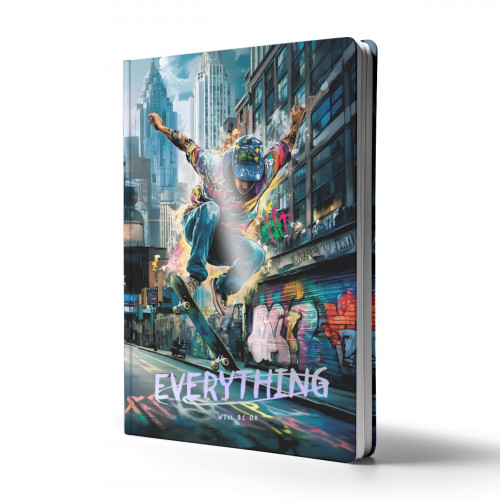 Блокнот В5 160 арк PRESTIGE Тінейджер на скейті клітинка, УФ лак, тиснення 1В3176 АРКУШ
