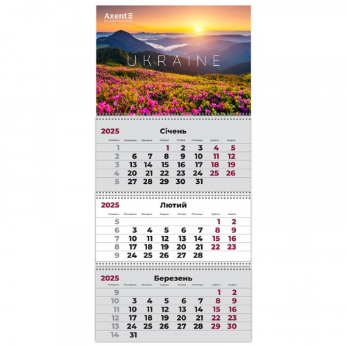 Календар настінний квартальний на 2025 рік Axent 8803-25-19-A з 3 пружинами – стане гарною окрасою офісу та щодня нагадуватиме вам про важливі дати. Ефектний дизайн даруватиме натхнення для успішного планування справ.