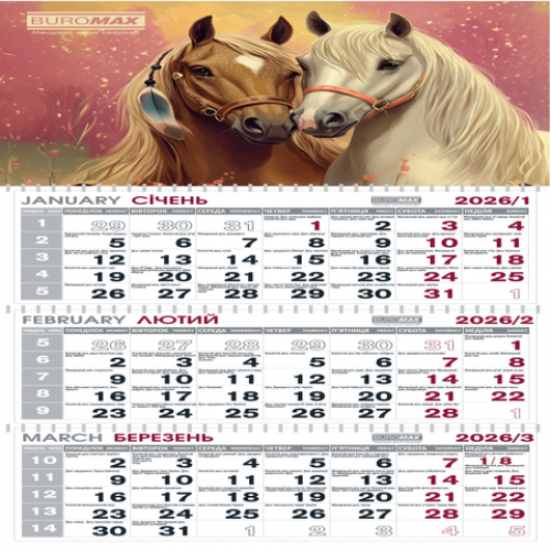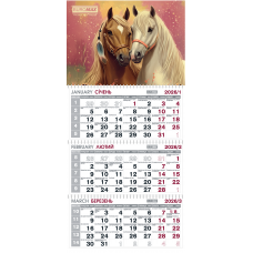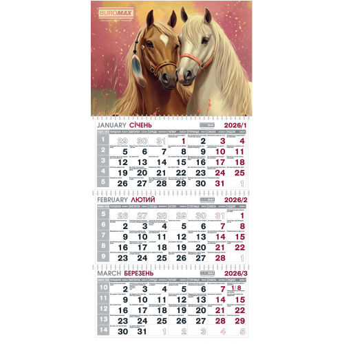 Календар настінний квартальний 2026 р ВМ.2105.10 Рік коня ( 3 пружини, 298х648 мм) (20)