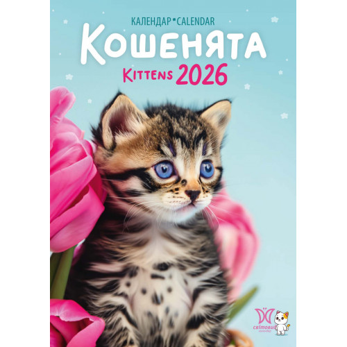 Календар Світовид на 2026 рік Кошенята - це настінний перекидний календар із яскравими зображеннями кошенят, які весело проводять час у святковій атмосфері!