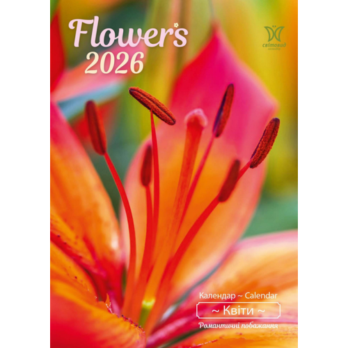 Календар Світовид на 2026 рік Flowers - це настінний перекидний календар із зображеннями барвистих та красивих квітів.