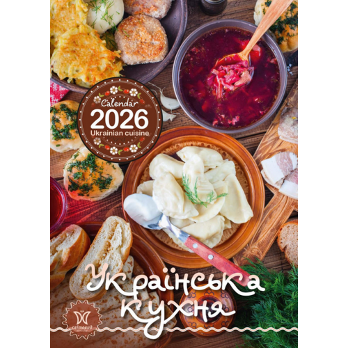 Календар Світовид на 2026 рік Українська кухня - це настінний перекидний календар із зображеннями традиційних українських страв.