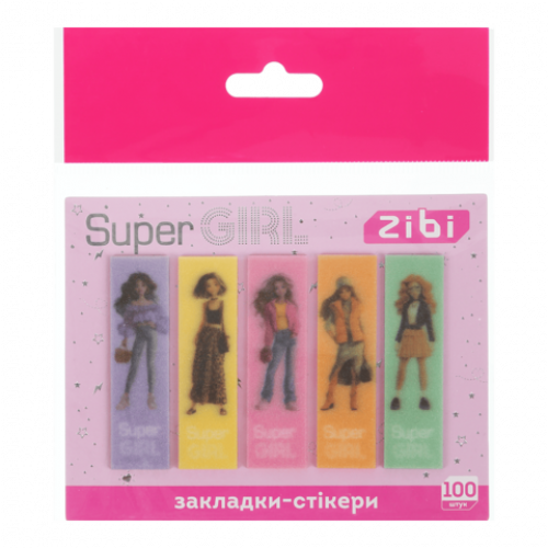 Пластикові закладки з клейким шаром та блиском серії SUPER GIRL від ZiBi – симпатичні помічники у виділенні необхідної інформації у блокнотах, книгах, підручниках, щоденниках, посібниках тощо. Допомагають організовувати кодування сторінок! Підходять для використання школярами, студентами та просто творчими людьми у повсякденному житті. Стильні дизайнерські малюнки на закладках та блискітки, що іскряться на світлі, привернуть увагу і сподобаються маленьким і дорослим модницям!