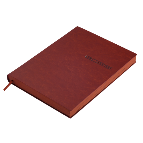 Гнучка обкладинка щоденника IDEAL виконана з штучної шкіри з фактурою натуральної шкіри. Гармонійно доповнює дизайн сліпе тиснення року на лицьовій стороні обкладинки та тонований зріз внутрішнього блоку в колір обкладинки.