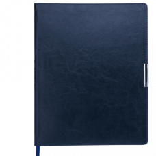 Щотижневик Salerno має привабливий і якісний покривний матеріал обкладинки зі штучної шкіри синього кольору. Унікальною його особливістю є гнучка обкладинка з металевим декором. Гармонійно доповнює дизайн тиснення року на торці і ляссе в колір обкладинки.