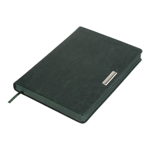 Гнучка обкладинка щотижневика SALERNO виконана з гладкої штучної шкіри. Унікальним елементом дизайну є металевий декор - шильда на лицьовій стороні обкладинки. Гармонійно доповнює дизайн сліпе тиснення року на корінці, тонований зріз внутрішнього блоку в колір обкладинки та тонований в колір обкладинки зріз внутрішнього блоку.