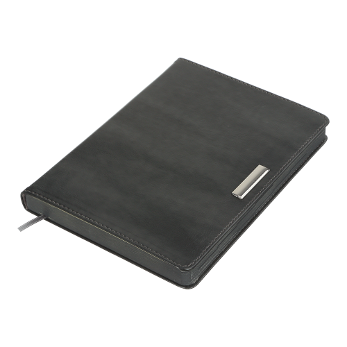 Гнучка обкладинка щотижневика SALERNO виконана з гладкої штучної шкіри. Унікальним елементом дизайну є металевий декор - шильда на лицьовій стороні обкладинки. Гармонійно доповнює дизайн сліпе тиснення року на корінці, тонований зріз внутрішнього блоку в колір обкладинки та тонований в колір обкладинки зріз внутрішнього блоку.