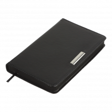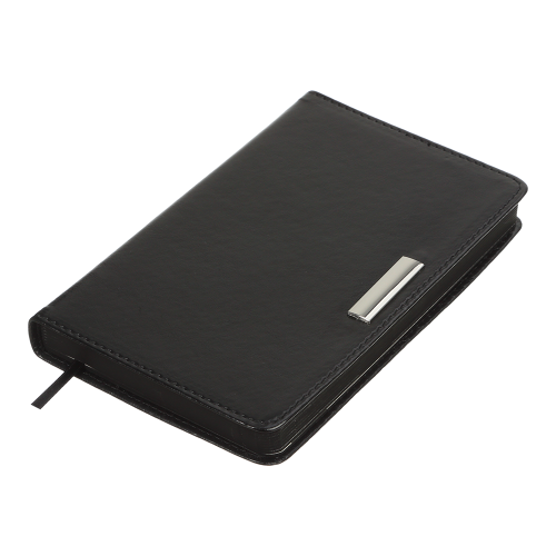 Гнучка обкладинка щоденника SALERNO виконана з гладкої штучної шкіри. Унікальним елементом дизайну є металевий декор - шильда на лицьовій стороні обкладинки. Гармонійно доповнює дизайн сліпе тиснення року на корінці, декоративний шов по периметру обкладинки та тонований зріз внутрішнього блоку в колір обкладинки.