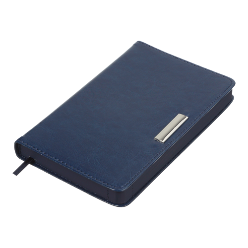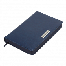 Гнучка обкладинка щоденника SALERNO виконана з гладкої штучної шкіри. Унікальним елементом дизайну є металевий декор - шильда на лицьовій стороні обкладинки. Гармонійно доповнює дизайн сліпе тиснення року на корінці, декоративний шов по периметру обкладинки та тонований зріз внутрішнього блоку в колір обкладинки.