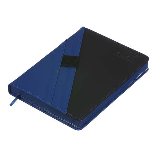 Жорстка обкладинка щоденника TRIUMPH виконана з гладкої штучної шкіри з ефектом soft touch, з поролоном, в оригінальному та функціональному стилі, що поєднує матеріал двох контрастних кольорів. Загальний вигляд обкладинки завершують декоративний шов по периметру, по діагоналі на стику кольорів та сліпе тиснення року. Обкладинка містить вшиту гумку для фіксації ручки. Гармонійно доповнює дизайн тонований в колір обкладинки зріз внутрішнього блоку.