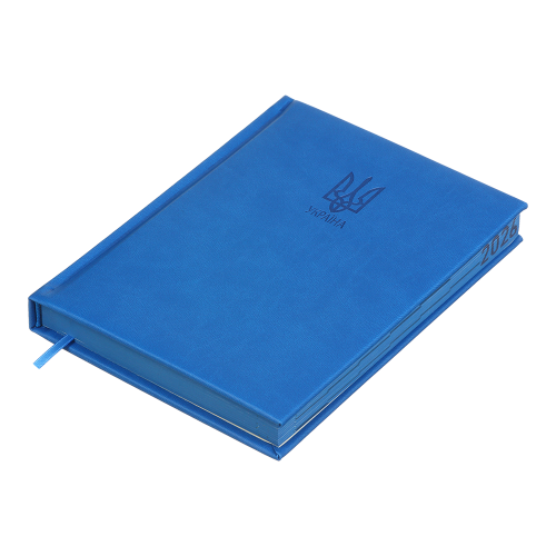 Жорстка обкладинка з гладкої штучної шкіри з поролоном щоденника HERALDRY виконана у витриманому та лаконічному стилі з національною символікою - оздоблена сліпим тисненням Герба України. Гармонійно доповнює дизайн щоденника тонований в колір обкладинки зріз внутрішнього блоку з нанесеним роком.