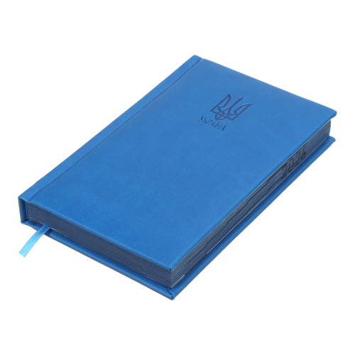 Жорстка обкладинка з гладкої штучної шкіри з поролоном щоденника HERALDRY виконана у витриманому та лаконічному стилі з національною символікою - оздоблена сліпим тисненням Герба України. Гармонійно доповнює дизайн щоденника тонований в колір обкладинки зріз внутрішнього блоку з нанесеним роком.