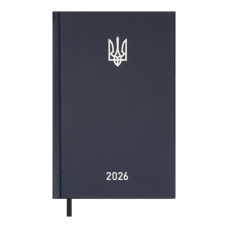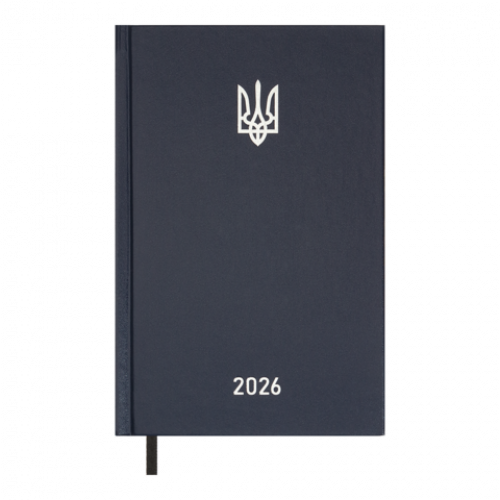 Жорстка обкладинка щоденника AIRY виконана з бумвінілу в лаконічному дизайні з нанесенням Тризуба та року срібною фольгою на лицьовій стороні.