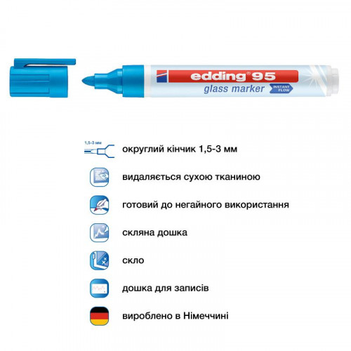 Маркер Edding Glass e-95 1,5-3 мм круглий блакитн.