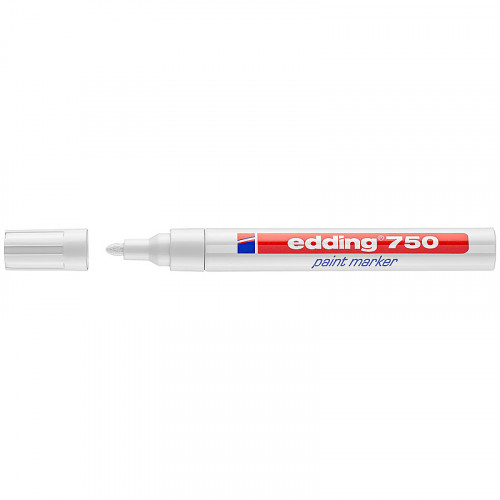 Маркер edding Paint e-750/49 підходить для нанесення перманентного маркування на будь-які поверхні, навіть на темні та прозорі матеріали (метал, скло та пластик). Має виняткове лакове чорнило, яке залишається видимим після впливу температур до 1000°C. Водостійке, термостійке, швидко сохне та вирізняється світлостійкістю, зносостійкістю.Чорнило не містить толуолу та ксилолу і практично не має запаху. Округлий пишучий вузол. Ширина лінії: 2-4 мм. Колір чорнила: білий.