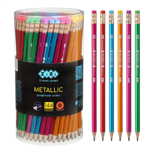 Чорнографітові олівці METALLIC від ZiBi мають стильний дизайн корпусу, підходять для малювання, креслення, ведення записів, нотаток та чорнеток. Такі олівці стануть в нагоді школярам, студентам, працівникам сфери освіти, офісів, можуть використовуватися вдома в побуті. При виготовленні цих олівців не постраждало жодне дерево - вони мають корпус, виготовлений з пластику!