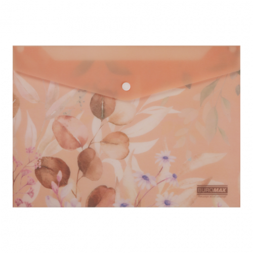 Папка-конверт на кнопці серії ARABESKI від BUROMAX підходить для систематизації, зберігання і транспортування документів. Папка виконана в ніжному квітковому дизайні, що неодмінно буде приваблювати і надихати! Така папка підійде для відвідування ділових зустрічей, транспортування та зберігання паперів, навчальних матеріалів, посібників та багато іншого. Папка стане в нагоді співробітникам офісних і бізнес центрів, фінансових відділів і установ, студентам і школярам, захистить вміст від зминання, намокання чи забруднення.
