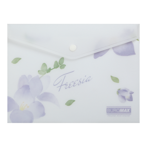 Папка-конверт на кнопці серії ARABESKI від BUROMAX підходить для систематизації, зберігання і транспортування документів. Папка виконана в яскравому квітковому дизайні з блиском, що іскриться на світлі, неодмінно буде приваблювати і надихати! Така папка підійде для відвідування ділових зустрічей, транспортування та зберігання паперів, навчальних матеріалів, посібників та багато іншого. Папка стане в нагоді співробітникам офісних і бізнес центрів, фінансових відділів і установ, студентам і школярам, захистить вміст від зминання, намокання чи забруднення.