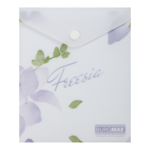 Папка-конверт на кнопці серії ARABESKI від BUROMAX підходить для зберігання і транспортування документів, записок, нотаток, листівок, карток. Може викорстовуватися як маленька косметичка, пенал чи гаманець. Папка виконана в ніжному квітковому дизайні з блиском, що іскриться на світлі, неодмінно буде приваблювати і надихати! Папка стане в нагоді співробітникам офісів, студентам і школярам, в побуті, захистить вміст від зминання, намокання чи забруднення.