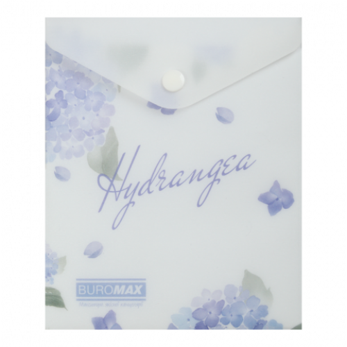 Папка-конверт на кнопці серії ARABESKI від BUROMAX підходить для зберігання і транспортування документів, записок, нотаток, листівок, карток. Може викорстовуватися як маленька косметичка, пенал чи гаманець. Папка виконана в ніжному квітковому дизайні з блиском, що іскриться на світлі, неодмінно буде приваблювати і надихати! Папка стане в нагоді співробітникам офісів, студентам і школярам, в побуті, захистить вміст від зминання, намокання чи забруднення.