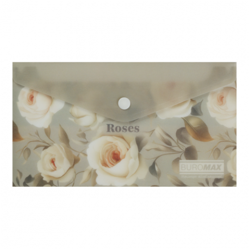 Папка-конверт євроформату DL на кнопці серії ARABESKI від BUROMAX підходить для зберігання і транспортування документів, має зручний формат для подорожей. Папка виконана в стильному квітковому дизайні, що неодмінно буде приваблювати і надихати! Папка найкраще стане в нагоді співробітникам туристичних та рекламних агенцій та компаній, гідам та маркетологам, та багатоьм іншим споживачам, захистить вміст від зминання, намокання чи забруднення.