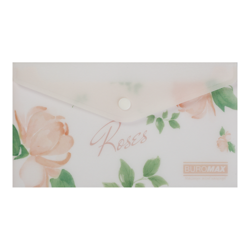 Папка-конверт євроформату DL на кнопці серії ARABESKI від BUROMAX підходить для зберігання і транспортування документів, має зручний формат для подорожей. Папка виконана в стильному квітковому дизайні, що неодмінно буде приваблювати і надихати! Папка найкраще стане в нагоді співробітникам туристичних та рекламних агенцій та компаній, гідам та маркетологам, та багатоьм іншим споживачам, захистить вміст від зминання, намокання чи забруднення.