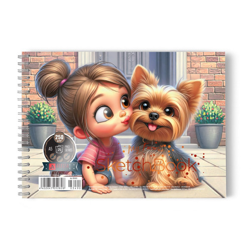Скетчбук А5 Дівчинка і цуценя 25 арк, на спіралі, м'яка обкладинка, білий блок 1В3490 АРКУШ (20)
