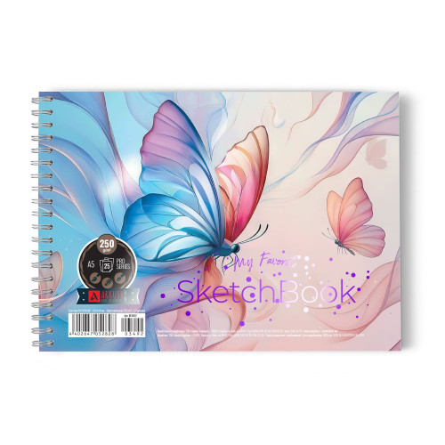 Скетчбук А5 Метелики 25 арк, на спіралі, м'яка обкладинка, білий блок 1В3492 АРКУШ (20)