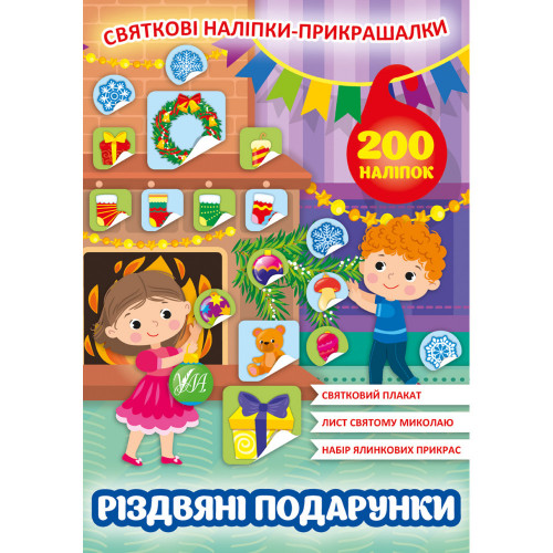 Книжка «Різдвяні подарунки» буде чудовим подарунком дитині на зимові свята, адже містить 200 різноманітних стікерів, якими можна прикрасити все навколо. Видання містить великий яскравий плакат, який неодмінно подарує святковий настрій, а також лист святому Миколаю, який можна заповнити, прикрасити та надіслати чарівному дідусеві. А набір ялинкових прикрас, які потрібно власноруч вирізати, стане гарною прикрасою для ялинки чи кімнати. Корисне й цікаве дозвілля гарантоване!