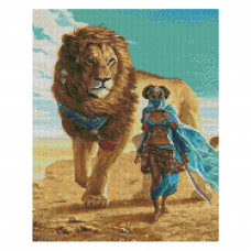 Алмазна мозаїка Strateg ПРЕМІУМ Дівчина з левом 40х50 см FA40828