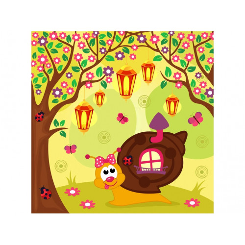 Картина за номерами Strateg ПРЕМІУМ Щасливий равлик з будиночком з лаком та з рівнем розміром 30х30 см