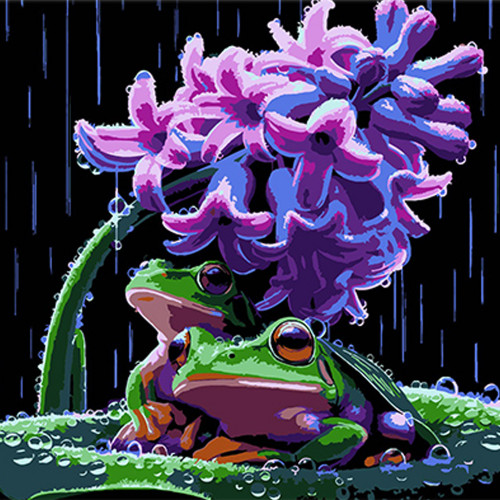Картина за номерами Strateg ПРЕМІУМ Жабенята та весняний дощ на чорному фоні розміром 30х30 см (SH3030-3)