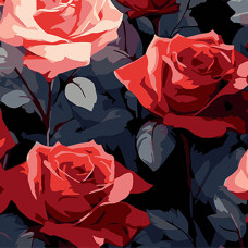 Картина за номерами Strateg ПРЕМІУМ Червоні троянди краси на чорному фоні розміром 30х30 см (SH3030-22)