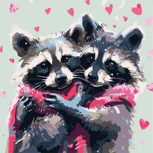 Картина за номерами Обійми єнотів, на чорному фоні 30х30 см Strateg