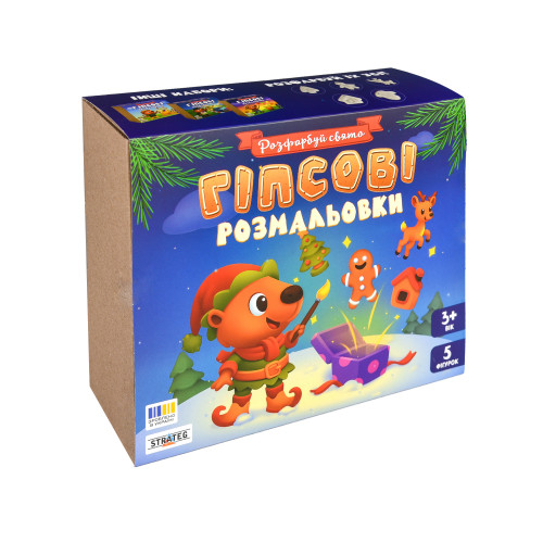 Створіть справжнє зимове диво власноруч! Цей набір дозволить вашій дитині поринути у чарівну атмосферу свят. У комплекті ви знайдете 5 гіпсових фігурок у вигляді улюблених новорічних символів: ялинки, оленя, пряникового чоловічка, будиночка та рукавички.