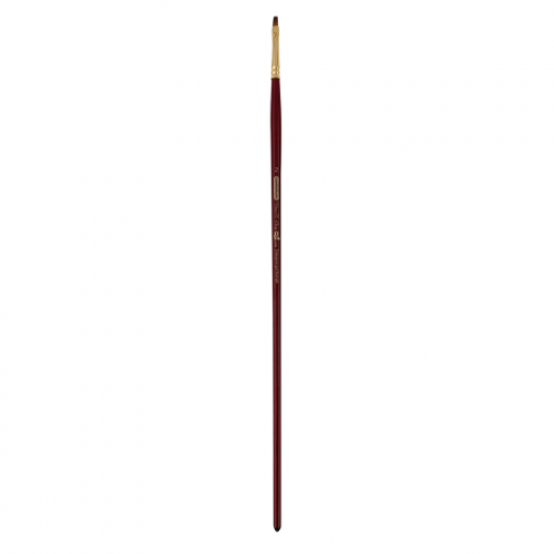 Високоякісний синтетичний волос (імітація колонка) вирізняється дуже високою м’якістю, еластичністю і пружністю. Матеріал ручки – натуральна деревина, пофарбована в стильний вишневий колір і покрита лаком. Обойма – безшовна, з нікельованої латуні. Плоским пензлем наносять широкі рівні мазки – він незамінний помічник при роботі з крупними ділянками полотна, коли потрібно нанесення широких рівних мазків постійної товщини. У разі потреби можна змінювати товщину мазку, змінюючи поворот пензля в процесі малювання. Плоский пензель дуже зручний при зображенні таких елементів природи, як земля, трава, листя, відносно точних обрисів. Рекомендується для всіх розповсюджених видів фарб. Незамінний при роботі з рідкими фарбами - гуашшю і аквареллю - коли від пензля потрібна висока пружність. При роботі з аквареллю дає матовий, пом’якшений шар кольору. Добре регулює текучість фарби і інтенсивність кольору шару. Прекрасно веде себе і з пастозними густими фарбами - олією і акрилом, як в густому, так і в розведеному вигляді.