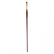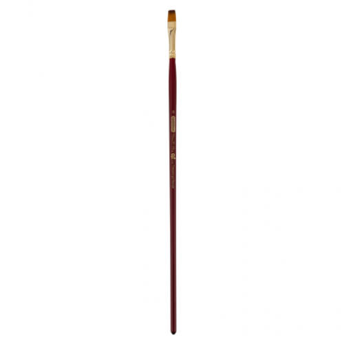 Високоякісний синтетичний волос (імітація колонка) вирізняється дуже високою м’якістю, еластичністю і пружністю. Матеріал ручки – натуральна деревина, пофарбована в стильний вишневий колір і покрита лаком. Обойма – безшовна, з нікельованої латуні. Плоским пензлем наносять широкі рівні мазки – він незамінний помічник при роботі з крупними ділянками полотна, коли потрібно нанесення широких рівних мазків постійної товщини. У разі потреби можна змінювати товщину мазку, змінюючи поворот пензля в процесі малювання. Плоский пензель дуже зручний при зображенні таких елементів природи, як земля, трава, листя, відносно точних обрисів. Рекомендується для всіх розповсюджених видів фарб. Незамінний при роботі з рідкими фарбами - гуашшю і аквареллю - коли від пензля потрібна висока пружність. При роботі з аквареллю дає матовий, пом’якшений шар кольору. Добре регулює текучість фарби і інтенсивність кольору шару. Прекрасно веде себе і з пастозними густими фарбами - олією і акрилом, як в густому, так і в розведеному вигляді.
